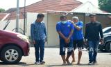 Dua tersangka pembuat serta pengedar minuman keras (miras) oplosan, YS (kedua kanan) dan RB menuju lokasi gelar perkara kasus miras oplosan di Polres Bantul, Yogyakarta, Rabu (18/10/2023). Kedua tersangka ditangkap anggota Polres Bantul usai meninggalnya TM usai pesta miras bersama RB dan diracik oleh YS. Miras oplosan ini dibuat menggunakan alkohol sisa bahan dekontaminasi APD nakes saat pandemi covid19 yang lalu. Setelah ditelusuri ternyata YS peracik miras dan menjualnya dengan kemasan asli serta memiliki pita cukai palsu sejak 2022. Akibat perbuatannya YS dan RB dijerat Pidana Pasal 204 dengan ancaman hukuman 20 tahun penjara. (FOTO : Republika/Wihdan Hidayat)