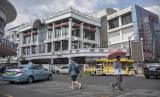 Warga menggunakan payung saat melintasi Jalan Braga, Kota Bandung, Jawa Barat, Rabu (18/10/2023). Badan Meteorologi, Klimatologi, Geofisika (BMKG) Bandung mencatat suhu maksimum atau terpanas Kota Bandung mencapai 35,6 derajat celcius pada awal Oktober 2023. Bulan Oktober tahun ini menjadi rekor suhu terpanas di Kota Bandung. (FOTO : ABDAN SYAKURA/REPUBLIKA)