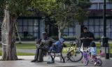 Warga beraktivitas di Kiara Artha Park, Kota Bandung, Jawa Barat, Rabu (18/10/2023). Badan Meteorologi, Klimatologi, Geofisika (BMKG) Bandung mencatat suhu maksimum atau terpanas Kota Bandung mencapai 35,6 derajat celcius pada awal Oktober 2023. Bulan Oktober tahun ini menjadi rekor suhu terpanas di Kota Bandung. (FOTO : ABDAN SYAKURA/REPUBLIKA)