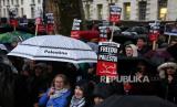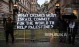 REPUBLIKA.CO.ID, LONDON -- Ribuan orang menggelar aksi unjuk rasa solidaritas untuk Palestina di kawasan Downing Street, kantor Perdana Menteri Rishi Sunak di London, Inggris, Kamis (19/10/2023).