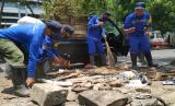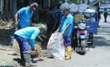 Sejumlah petugas gorong-gorong dan kebersihan (Gober) membersihkan sampah di Jalan Suryani, Kota Bandung, yang baru ditinggalkan para PKL, Kamis (19/10). Pemkot Bandung saat ini terus berupaya melakukan penanganan sampah dan penataan PKL sebagai salah satu upaya mewujudkan Bandung yang tertib dan nyaman bagi masyarakat. (FOTO : Edi Yusuf/Republika)