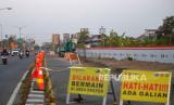 Proyek pembongkaran separator Ring Road Utara untuk proyek tol di Trihanggo, Sleman, Yogyakarta, Kamis (19/10/2023). Pembongkaran separator Ring Road Utara Yogyakarta ini merupakan kelanjutan proyek jalan tol Solo-Jogja Seksi 2 paket 2.2. Lama pembongkaran separator sisi Selatan dan Utara diperkirakan memakan waktu 19 hari atau hingga 8 November mendatang. Untuk itu, maka rekayasa lalu-lintas dilakukan untuk kendaraan R2 akan dialihkan ke jalur cepat untuk sementara. (FOTO : Republika/Wihdan Hidayat)