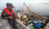REPUBLIKA.CO.ID, ACEH -- Anggota TNI AL memeriksa kapal milik nelayan saat melakukan patroli laut terpadu di Perairan Laut Lhokseumawe, Aceh, Kamis (19/10/2023).