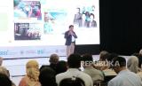 Direktur Utama BSI Hery Gunardi memberikan paparannya pada sesi INSPITALK di depan ratusan mahasiswa UGM pada acara Sharia Financial Literacy: Young, Blessed & Free yang berlangsung di Grha Sabha Universitas Gadjah Mada Yogyakarta, Kamis (19/10/2023). PT Bank Syariah Indonesia Tbk. (BSI) terus berupaya mendorong peningkatan literasi dan inklusi keuangan syariah di dalam negeri. BSI berharap mahasiswa dapat menjadikan bank syariah sebagai salah satu referensi utama saat mereka masuk dunia kerja. (FOTO : Dok Republika)