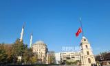 REPUBLIKA.CO.ID, ISTANBUL -- Bendera nasional Turki tampak berkibar setengah tiang di pusat Kota Istanbul, Turki, Jumat (20/10/2023).