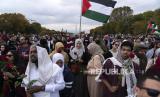 Masyarakat berunjuk rasa di National Mall saat demonstrasi pro-Palestina di Washington, Jumat, (20/10/2023) (FOTO : AP Photo/Jose Luis Magana)