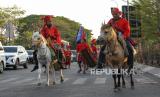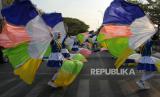 REPUBLIKA.CO.ID, MAKASSAR. -- Peserta menampilkan tarian bendera saat mengikuti kirab budaya di Makassar, Sulawesi Selatan, Sabtu (21/10/2023).