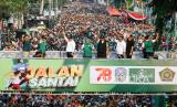 Sejumlah peserta mengikuti acara Jalan Santai di Jalan Gubernur Suryo, Surabaya, Jawa Timur, Sabtu (21/10/2023). Acara yang diikuti puluhan ribu peserta dari sejumlah daerah itu dalam rangka memeriahkan Hari Santri Nasional 2023. (FOTO : ANTARA FOTO/Rizal Hanafi)