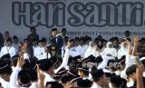 REPUBLIKA.CO.ID, SURABAYA -- Presiden Joko Widodo menjadi pembina pada upacara peringatan Hari Santri 2023 yang digelar di Tugu Pahlawan, Surabaya, Ahad (22/10/2023). Jokowi pun mengapresiasi kiprah santri yang menjadi pilar kekuatan bangsa sejak zaman perjuangan kemerdekaan hingga saat ini.