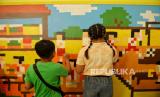Peserta menggambar di papan mural pixel saat mengikuti kegiatan menggambar pixel mural art pada Penghargaan Festival Menggambar Nasional 2023 di Jakarta, Ahad (22/10/2023). (FOTO : Republika/Thoudy Badai)