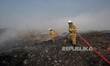 REPUBLIKA.CO.ID, BANTEN -- Petugas pemadam kebakaran Kota Tangerang melakukan pendinginan gunungan sampah yang terbakar di tempat pembuangan akhir (TPA) Rawa Kucing, Neglasari, Kota Tangerang, Banten, Ahad (22/10/2023). Setelah terbakar hampir 3 hari akhirnya api yang membakar TPA sampah seluas 35 hektare sudah dapat dipadamkan petugas.