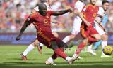 Romelu Lukaku dari Roma (kanan) mengontrol bola saat pertandingan sepak bola Serie A Italia antara AS Roma dan AC Monza, di Stadio Olimpico, Roma, Ahad, (22/10/2023). (FOTO : Alfredo Falcone/LaPresse via AP)