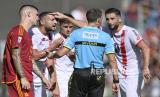 Wasit Giovanni Ayroldi berbicara kepada para pemain, saat pertandingan sepak bola Serie A Italia antara AS Roma dan AC Monza, di Stadio Olimpico, Roma, Ahad, (22/10/2023). (FOTO : Alfredo Falcone/LaPresse via AP)