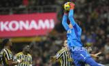 Penjaga gawang Juventus Wojciech Szczesny melakukan penyelamatan saat pertandingan sepak bola Serie A antara AC Milan dan Juventus, di stadion San Siro di Milan, Italia, Senin (23/10/2023) dini hari WIB. (FOTO : AP Photo/Luca Bruno)