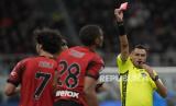 Malick Thiaw dari AC Milan (tengah) mendapat kartu merah saat pertandingan sepak bola Serie A antara AC Milan dan Juventus, di stadion San Siro di Milan, Italia, Senin (23/10/2023) dini hari WIB. (FOTO : AP Photo/Luca Bruno)