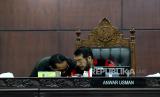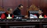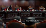 REPUBLIKA.CO.ID, JAKARTA -- Ketua Majelis Hakim Mahkamah Konstitusi Anwar Usman memimpin sidang pembacaan putusan di Ruang Sidang Pleno Gedung MK, Jakarta, Senin (23/10/2023).