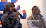 Ketua Program Studi Manajemen Logistik Industri Elektronika Politeknik APP Jakarta Erika Fatma (kiri) dan Dosen Tetap dan Sekretaris Program Studi S1 Logistik ITL Trisakti Sita Aniisah Sholihah (kanan) menjadi narasumber diskusi bertajuk Regenarasi Sektor Logistik : Peluang & Tantangan di Jakarta, Senin (23/10/2023). TIKI, perusahaan jasa pengiriman terkemuka di Indonesia dengan rekam jejak 53 tahun di Indonesia, kembali menunjukkan komitmennya dalam merangkul dan mendorong partisipasi generasi muda Indonesia untuk menjadi bagian dari masa depan logistik nasional. Setelah sebelumnya menggandeng Institut Transportasi dan Logistik Trisakti (ITL Trisakti), TIKI pun kembali menjalin kerjasama dengan dua kampus terkemuka lainnya yang memiliki program studi Transportasi & Logistik, yaitu Politeknik APP Jakarta dan Universitas Pertamina. (FOTO : Republika/Prayogi)