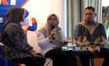REPUBLIKA.CO.ID,JAKARTA -- Direktur Pelaksana TIKI Trie Maulana Apriyanto (kanan), Dosen Tetap dan Sekretaris Program Studi S1 Logistik ITL Trisakti Sita Aniisah Sholihah (tengah) dan Ketua Program Studi Manajemen Logistik Industri Elektronika Politeknik APP Jakarta Erika Fatma (kiri) menjadi narasumber diskusi bertajuk "Regenerasi Sektor Logistik: Peluang & Tantangan" di Jakarta, Senin (23/10/2023).