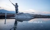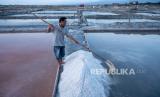 REPUBLIKA.CO.ID,PALU -- Petani memanen garam di Pusat Penggaraman Talise, Palu, Sulawesi Tengah, Senin (23/10/2023).