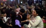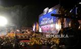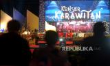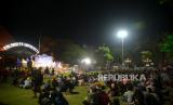 Warga menonton Konser Karawitan 2023 di Balai Kota Surakarta, Jawa Tengah, Senin (23/10/2023) malam. Konser Karawitan dengan tajuk Gaung Gongso Membahana ini menampilkan 11 grup karawitan dari Surakarta dan daerah lain secara bergantian. Lima grup karawitan diantaranya berasal dari Banyumas, Semarang, Bali, Banyuwangi, dan Sumatera Barat. Selain untuk melestarikan budaya lokal, konser ini juga untuk mengenalkan kesenian karawitan dari wilayah lain. (FOTO : Republika/Wihdan Hidayat)