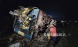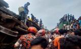 REPUBLIKA.CO.ID,  BHAIRAB. --  Petugas melakukan operasi penyelamatan setelah kereta penumpang bertabrakan dengan kereta barang di Bhairab, sekitar 85 km timur dari Dhaka, Bangladesh pada Senin (23/10/2023).