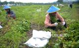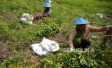 Petani memanen kacang tanah di Pundong, Bantul, Yogyakarta, Selasa (24/10/2023). Dinas Ketahanan Pangan dan Pertanian (DKPP) Kabupaten Bantul memprediksi produksi hasil tanaman palawija terutama kacang tanah akan naik pada akhir 2023. Kemarau yang disertai El Nino menyebabkan petani beralih dari menanam padi ke tanaman palawija. Luas tanam kacang tanah melebihi 2 ribu hektare atau naik 300 persen lebih dibanding tahun lalu. Sementara luas panen kacang tanah diprediksi mencapai 2,7 juta hektare pada tahun ini, dan luas panen tahun lalu hanya 1,2 juta hektare. (FOTO : Republika/Wihdan Hidayat)