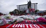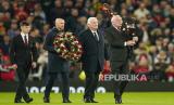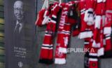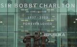 REPUBLIKA.CO.ID, MANCHESTER. -- Penghormatan untuk mengenang Sir Bobby Charlton diletakkan di luar stadion, setelah kematiannya sebelum pertandingan sepak bola grup A Liga Champions antara Manchester United dan Kopenhagen di stadion Old Trafford di Manchester, Inggris, Rabu (25/10/2023) dini hari WIB.