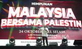 REPUBLIKA.CO.ID,  KUALA LUMPUR. --  Warga Malaysia mengikuti kegiatan Majelis Malaysia Bersama Palestina di Stadion Axiata Arena, Bukit Jalil, Kuala Lumpur, Selasa (24/10/2023).