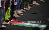 Warga Malaysia melakukan sholat jamaah saat unjuk rasa untuk menunjukkan dukungan mereka terhadap rakyat Palestina di Kuala Lumpur, Malaysia, Selasa, (24/10/2023).  (FOTO : AP Photo/Vincent Thian)