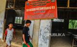 Dua nak berjalan di depan ruang kelas yang rusak saat libur sekolah di SD Negeri 3 Kutakarang (Kelas Jauh), Pandeglang, Banten, Rabu (25/10/2023). Sebanyak empat bangunan ruang kelas di sekolah yang berada di pelosok Kabupaten Pandeglang tersebut kondisinya sudah rusak selama sembilan tahun dan hingga kini belum ada bantuan dari pemerintah. (FOTO : ANTARA FOTO/Muhammad Bagus Khoirunas)
