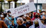REPUBLIKA.CO.ID,ATLANTA -- Ratusan orang menggelar aksi demonstrasi menuntut gencatan senjata sebagai reaksi terhadap serangan militer yang terus-menerus terhadap warga sipil Gaza, di pusat Kota Atlanta, Georgia, AS, Rabu (25/10/2023).