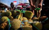 REPUBLIKA.CO.ID, TIDORE -- Pedagang menyusun buah durian di atas kapal kayu untuk dijual ke Ternate di Pelabuhan Rum Tidore, Kota Tidore Kepulauan, Maluku Utara, Rabu (25/10/2023).