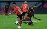 REPUBLIKA.CO.ID,GIANYAR -- Pesepak bola PSM Makassar Yance Sayuri (kanan) berebut bola dengan Hougang United Kuriyama (kiri) saat pertandingan Grup H Piala AFC 2023/2024 di Stadion Kapten I Wayan Dipta, Gianyar, Bali, Rabu (25/10/2023).