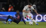 Lucas Hernandez dari PSG (kanan) berebut bola dengan pemain AC Milan Christian Pulisic pada pertandingan sepak bola grup F Liga Champions antara Paris Saint Germain dan AC Milan di stadion Parc des Princes di Paris, Kamis (26/10/2023) dini hari. (FOTO : AP Photo/Thibault Camus)