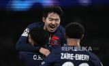Lee Kang-in dari PSG melakukan selebrasi bersama rekan satu timnya setelah mencetak gol ketiga timnya pada pertandingan sepak bola grup F Liga Champions antara Paris Saint Germain dan AC Milan di stadion Parc des Princes di Paris, Kamis (26/10/2023) dini hari WIB. (FOTO : AP Photo/Thibault Camus)