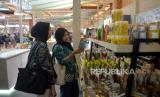 Pengunjung mengamati produk-produk dalam Indonesia Sharia Economic Festival (ISEF) ke-10 tahun 2023, di Jakarta Convention Center, Jakarta, Kamis (26/10/2023). Pelaksanaan ISEF ke-10 tahun 2023 tersebut mengangkat tema Accelerating Sharia Economy and Finance through Digitalization for Inclusive and Sustainable Growth. ISEF ke-10 ini diselenggarakan mulai 25 hingga 29 Oktober 2023 dengan rangkaian kegiatan terdiri dari seminar bertaraf nasional dan internasional, business matching, showcase internasional, dan eksibisi serta bebagai kompetisi. Melalui penyelenggaran ISEF ke-10 ini diharapkan menjadi momentum untuk semakin memperkuat upaya mengintegrasikan pemikiran dan inisiatif seluruh penggiat ekonomi syariah dalam pengembangan ekonomi keuangan syariah Indonesia. (FOTO : Republika/Prayogi)