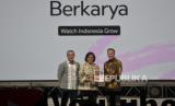Managing Director Google Indonesia Randy Jusuf (kanan) didampingi Vice President & Managing Director YouTube Asia Pacific Gautam Anand (kiri) memberikan laporan YouTube Impact Report kepada Menteri Keuangan Sri Mulyani Indrawati (tengah) dalam acara Kreator Indonesia Berkarya: Watch Indonesia Grow di Jakarta, Kamis (26/10/2023). Dalam kesempatan tersebut YouTube mengumumkan laporan baru yang disusun bersama firma konsultan independen Oxford Economics, yang menunjukkan bahwa pertumbuhan ekosistem kreator dan partner YouTube telah menghasilkan nilai ekonomi yang cukup besar bagi ekonomi Indonesia. Saat ini,lebih dari 400 ribu kreator dan partner di Indonesia mempekerjakan orang lain untuk menggarap channel YouTube mereka. (FOTO : Republika/Prayogi)