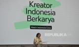 Menteri Keuangan Sri Mulyani Indrawati memberikan sambutan dalam acara Kreator Indonesia Berkarya: Watch Indonesia Grow di Jakarta, Kamis (26/10/2023). Dalam kesempatan tersebut YouTube mengumumkan laporan baru yang disusun bersama firma konsultan independen Oxford Economics, yang menunjukkan bahwa pertumbuhan ekosistem kreator dan partner YouTube telah menghasilkan nilai ekonomi yang cukup besar bagi ekonomi Indonesia. Saat ini,lebih dari 400 ribu kreator dan partner di Indonesia mempekerjakan orang lain untuk menggarap channel YouTube mereka. (FOTO : Republika/Prayogi)