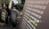 Dalam aksinya mereka meminta penindasan apartheid kepada warga Palestina dihentikan..