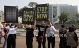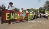 Dalam aksinya mereka meminta Israel menghentikan serangan besar-besaran ke Gaza sekaligus mengakhiri penindasan sistem apartheid kepada warga Palestina.