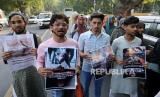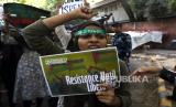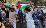 REPUBLIKA.CO.ID,NEW DELHI -- Puluhan aktivis pro Palestina menggelar aksi solidaritas dan menentang serangan militer Israel ke Jalur Gaza di New Delhi, India, Jumat (27/10/2023).