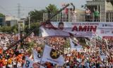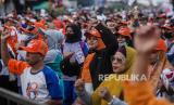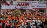 Sejumlah simpatisan mengikuti acara senam dan jalan bareng AMIN di Grand Depok City, Kota Depok, Jawa Barat, Sabtu (28/10/2023). Kegiatan yang diikuti oleh ribuan simpatisan dan kader partai dari Koalisi Perubahan tersebut sebagai bentuk dukungan terhadap pasangan bakal calon Presiden dan bakal calon Wakil Presiden Anies Baswedan-Muhaimin Iskandar pada Pilpres 2024. (FOTO : Republika/Putra M. Akbar)