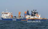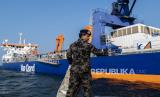 REPUBLIKA.CO.ID, JAKARTA -- Awak kapal pengawas Kelautan dan Perikanan Hiu 01 memantau Kapal MV VOX MAXIMA berbendera Belanda yang mengangkut pasir laut di Perairan Teluk Jakarta, Sabtu (28/10/2023). Kementerian Kelautan dan Perikanan (KKP) menghentikan dan memeriksa satu kapal hisap pasir laut yang diduga melakukan aktivitas pengerukan pasir tanpa dilengkapi dengan Persetujuan Kegiatan Pemanfaatan Ruang Laut (PKKPRL).