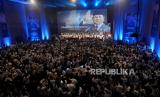REPUBLIKA.CO.ID, JAKARTA -- Bakal Calon Presiden (Bacapres) Koalisi Indonesia Maju (KIM) Prabowo Subianto menyampaikan pidato politiknya saat menghadiri acara deklarasi dukungan relawan Penerus Negeri di Jakarta, Sabtu (28/10/2023).