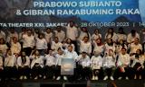 Relawan Penerus Negeri saat menghadiri acara deklarasi dukungan relawan Penerus Negeri di Jakarta, Sabtu (28/10/2023). Relawan Pemuda Penerus Negeri mendeklarasikan dukungannya untuk pasangan capres-cawapres Prabowo Subianto-Gibran Rakabuming Raka dalam kontestasi Pilpres Pemilu 2024. Acara tersebut juga dihadiri oleh Ketua Tim Pemenangan Prabowo-Gibran yakni Rosan Roeslani dan Menteri Investasi Bahlil Lahadalia serta relawan pendukung dari kalangan pelajar, anak muda dan orang tua. (FOTO : Republika/Thoudy Badai)