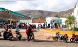 Warga setempat mengantre bahan bakar di SPBU yang rusak akibat badai Otis yang menerjang kawasan wisata Acapulco, Guerrero, Mexico, Sabtu (28/10/2023). (FOTO : EPA-EFE/David Guzman)