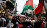 REPUBLIKA.CO.ID,SAO PAILO -- Demonstran pro-Palestina berpartisipasi dalam parade menentang perang di Gaza, di Paulista Aveneu di Sao Paulo, Brasil, pada Ahad (29/10/2023) waktu setempat.