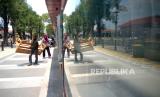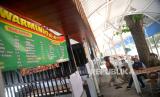 Deretan meja pengunjung yang kosong di Shelter Manahan, Surakarta, Jawa Tengah, Senin (30/10/2023). Tempat kuliner di sisi Barat Stadion Manahan ditutup operasionalnya selama 40 hari mulai 25 Oktober hingga 5 Desember untuk pelaksanaan Piala Dunia U17. Namun, selama penutupan Shelter Manahan ini pedagang akan mendapatkan kompensasi dari Pemkot Surakarta. (FOTO : Republika/Wihdan Hidayat)