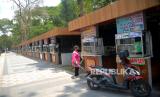 Deretan lapak kuliner yang tutup di Shelter Manahan, Surakarta, Jawa Tengah, Senin (30/10/2023). Tempat kuliner di sisi Barat Stadion Manahan ditutup operasionalnya selama 40 hari mulai 25 Oktober hingga 5 Desember untuk pelaksanaan Piala Dunia U17. Namun, selama penutupan Shelter Manahan ini pedagang akan mendapatkan kompensasi dari Pemkot Surakarta. (FOTO : Republika/Wihdan Hidayat)