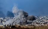 REPUBLIKA.CO.ID, JALUR GAZA. -- Rudal Israel menyerang bagian utara Jalur Gaza saat matahari terbenam, Ahad (29/10/2023.